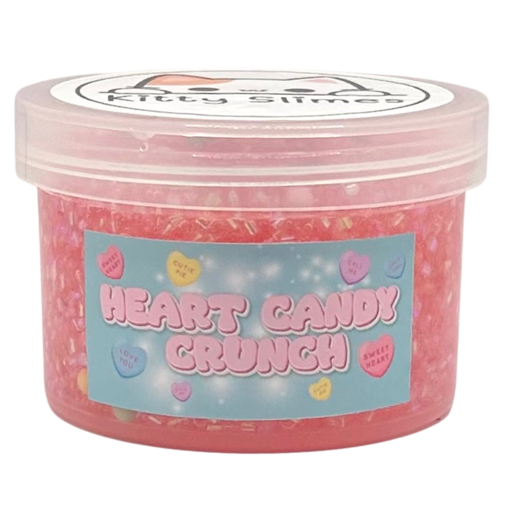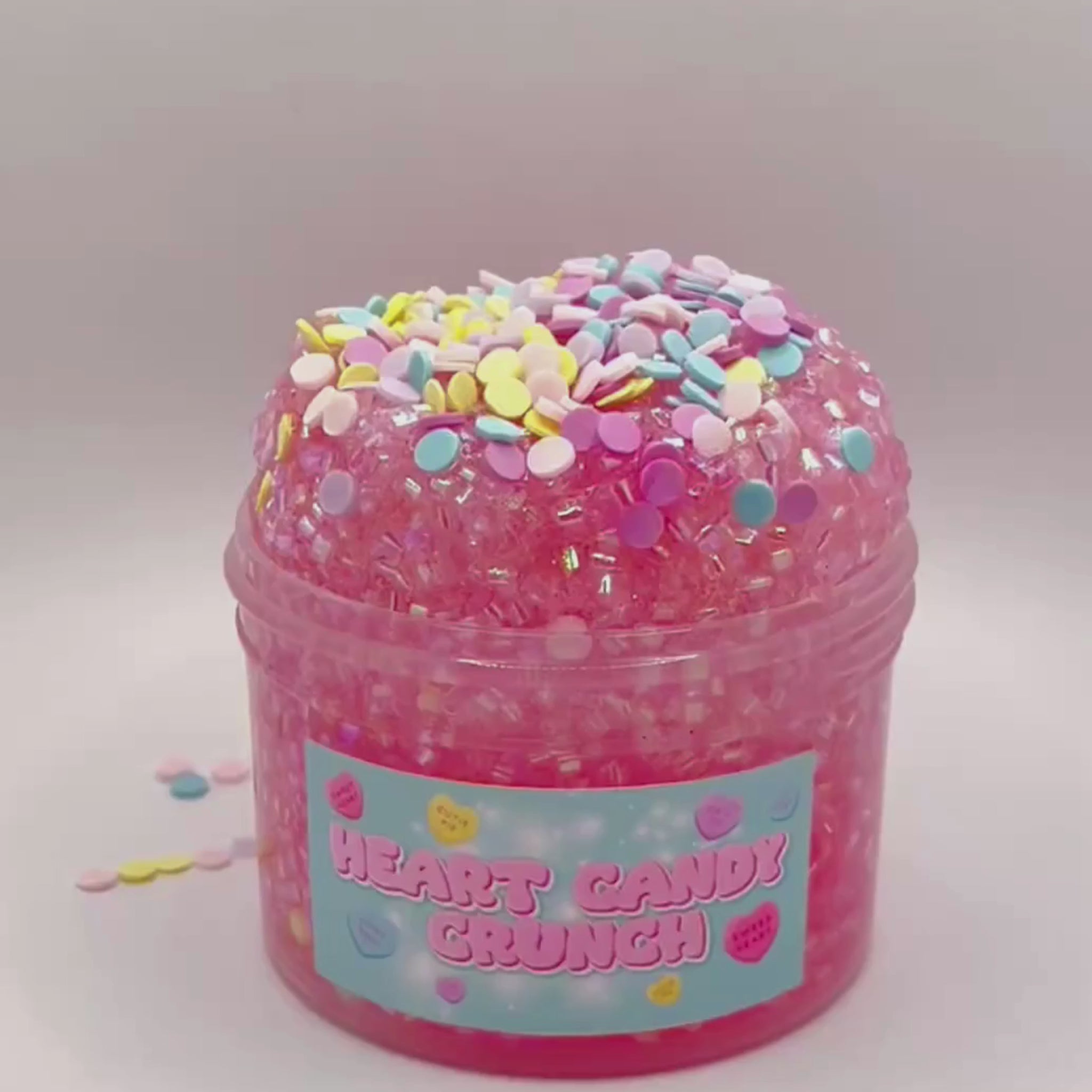 Heart Candy Crunch Bingsu Slime is a sparkly, crunchy bingsu slime topped with a sweet Valentine's candy heart & heart lollipop for the ultimate sensory treat! This slime is packed with satisfying crackles, dazzling glitter, and a sugary candy vibe that is perfect for stress relief, ASMR lovers, gift giving, & slime collectors!